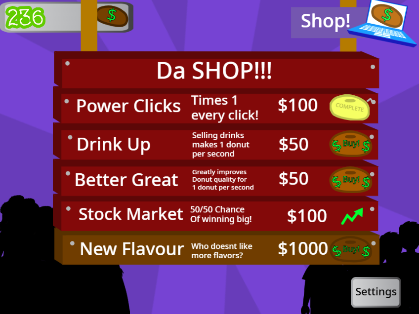 Start your Baking journey in this Never before seen genre of games, Donut Clicker, Upgrade your Donut to produce enough Donuts to break the game, Go through the several stages of Donut production, And finally, Question why there are police cars driving past so frequently, or don't.